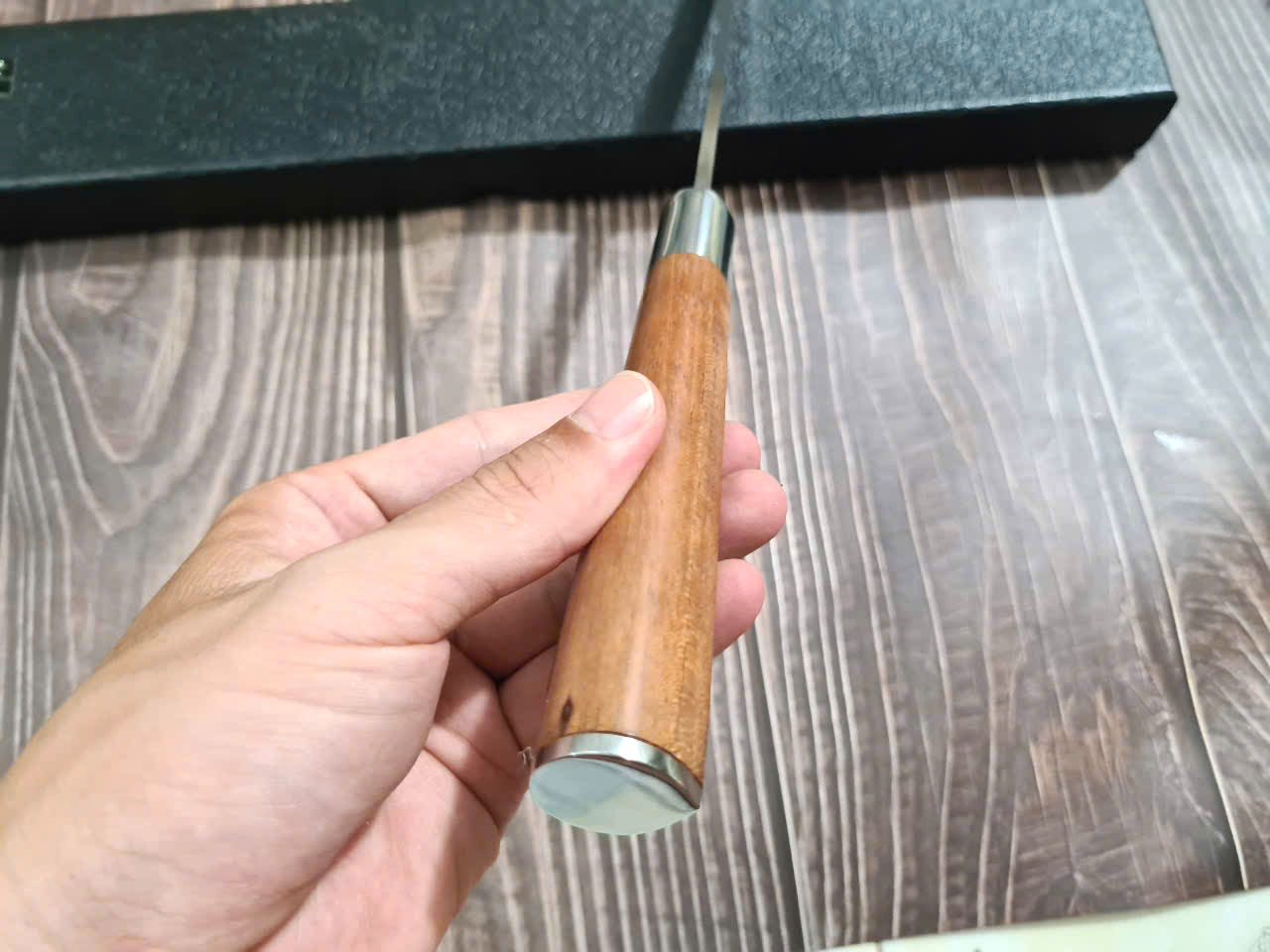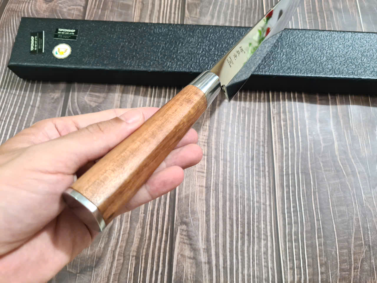 Cán được làm bằng gỗ Pakka có vẻ ngoài thanh lịch, Lưỡi Được làm từ chất liệu thép 7Cr17 cao cấp giúp D có độ sắc rất lâu, rất ýt khi phải mài.