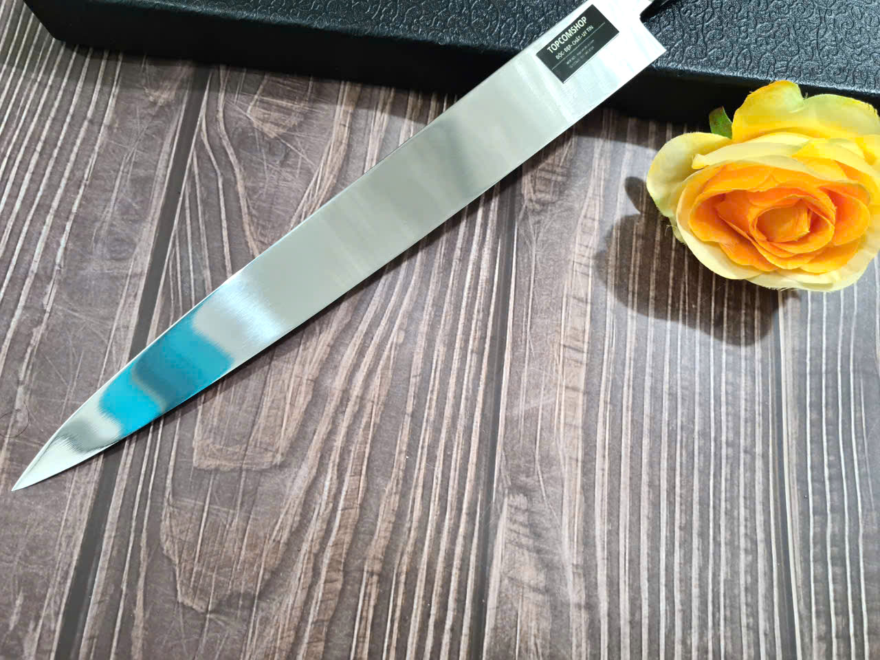 Tổng chiều dài của sản phẩm là 46CM , chiều rộng dao là 3.5CM. độ dày lưỡi 4.5mm