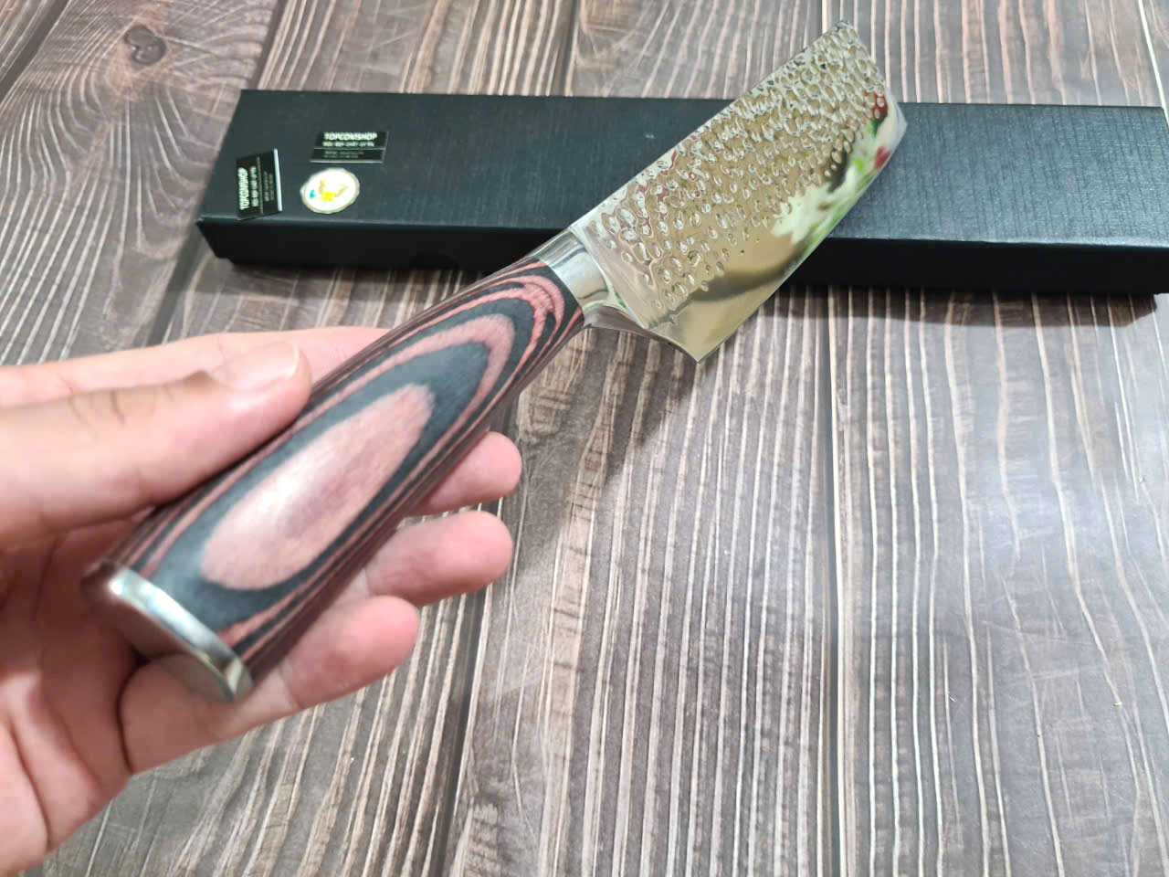 Tên sản phẩm: Dao Phúc Sen, Dao Thái Kiểu 03 Cán Gỗ Cẩm - Chức năng: chuyên thái thịt, rau củ - Chất liệu: 100% thép nhíp ô tô được lựa chọn và kiểm duyệt