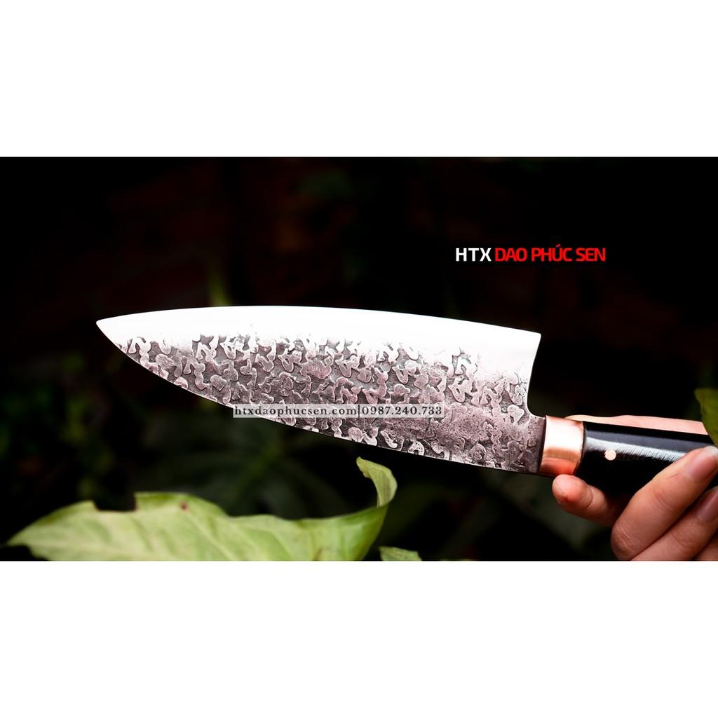 Dao Phúc Sen Dao Bầu 22 Cán Cẩm Khâu Đồng G10D - Kích thước: lưỡi: 20-22cm, cán: 13cm, rộng: 7,5cm, dầy: 1,5ly, trọng lượng: 300g - Chức năng: sử dụng chuyên thái lọc thịt ,cá,
