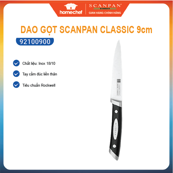 Dao thép Scanpan Classic 9cm (Bạc) – CLS1009/92100900 Đặc điểm nổi bật: - Chất liệu thép không gỉ hàm lượng carbon cao, độ bền vượt trội, không bị ăn mòn hay đổi màu. - Thiết