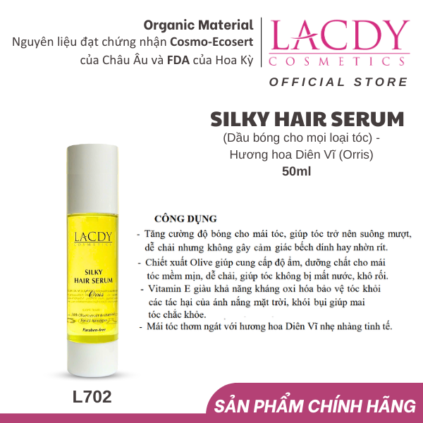 SILKY HAIR SERUM (Dầu bóng cho mọi loại tóc) - Hương hoa Diên Vĩ (Orris) Dầu bóng dành cho mọi loại tóc, đặc biệt cho tóc khô, gãy, rụng, chẻ ngọn. Với dầu olive, chiết
