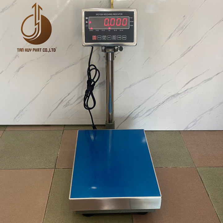 CÂN BÀN ĐIỆN TỬ XK3108A, ĐẦU INOX CHỐNG NƯỚC, THIẾT KẾ KIỂU DÁNG MẶT BÀN CÂN CAO, ĐẦU CHỈ THỊ GẮN DƯỚI KHUNG, KÍCH THƯỚC MẶT BÀN CÂN 40 CM X 50 CM (R X