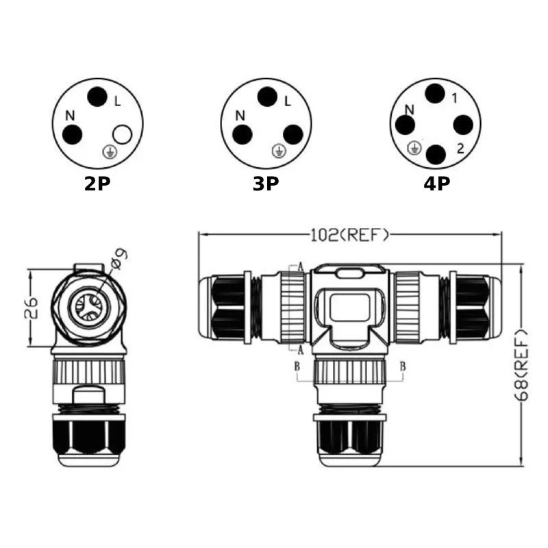 Đầu nối nhanh dây điện không thấm nước chữ T, cút nối dây điện nhanh chống nước chữ T