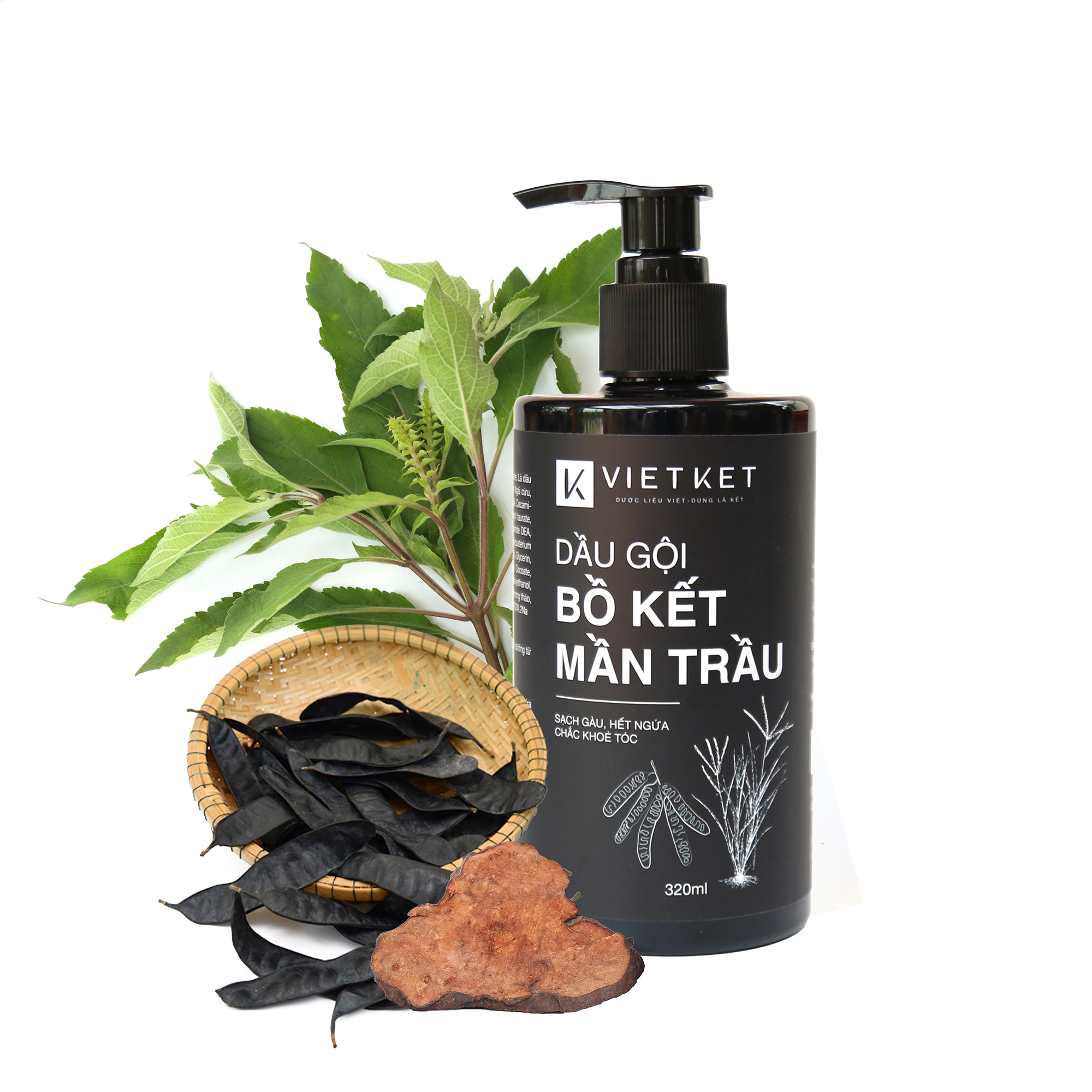 Thành phần: Chiết xuất từ cỏ màn trầu, chiết xuất bồ kết, hà thủ ô, dầu macadamia, tinh dầu bưởi, tinh dầu gừng, tinh dầu tràm trà, tinh dầu bạc hà, tinh dầu sả chanh,