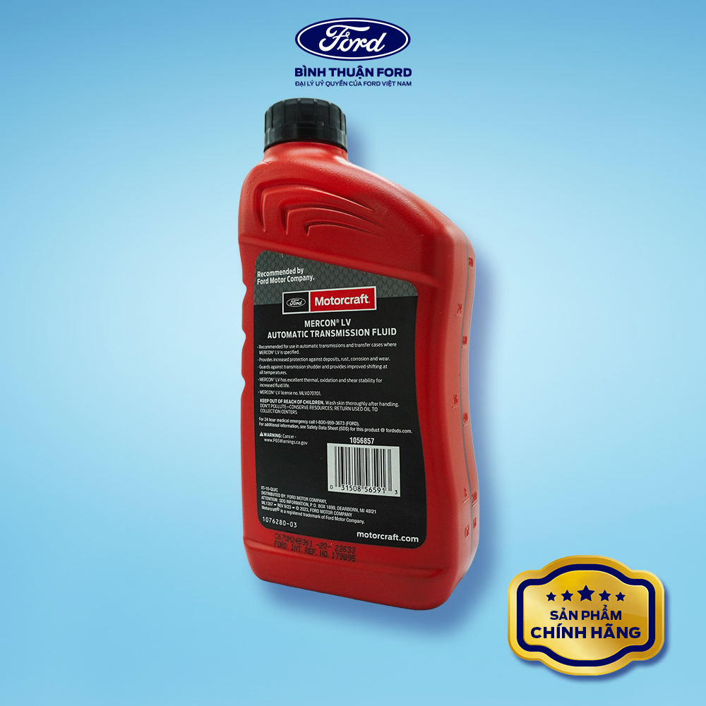 Dầu Hộp Số Tự Động Ford Motorcraft Mercon LV – Bảo Vệ Hộp Số, Lái Mượt Mà (Phù hợp cho Ford Fiesta 2011+, Ranger 2011+) ------ Đặc điểm nổi bật: - Chính hãng Motorcraft –