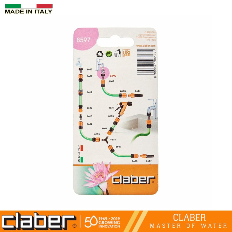 Thông tin cơ bản về độ chuyển ren ngoài Claber: - Thương hiệu: Claber - Sản xuất tại Italy - Chất liệu: nhựa ABS được đúc - Kích thước: Chiều rộng: 15 cm, Chiều cao: