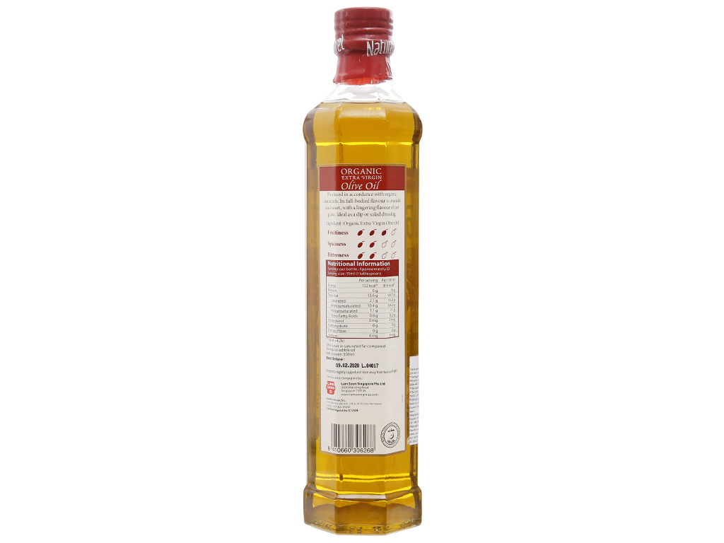Naturel Organic Extra Virgin Olive Oil được làm từ những quả olive được trồng, thu hoạch và chế biến theo tiêu chuẩn sản xuất hữu cơ. - Hàm lượng chất béo không bão hòa đơn