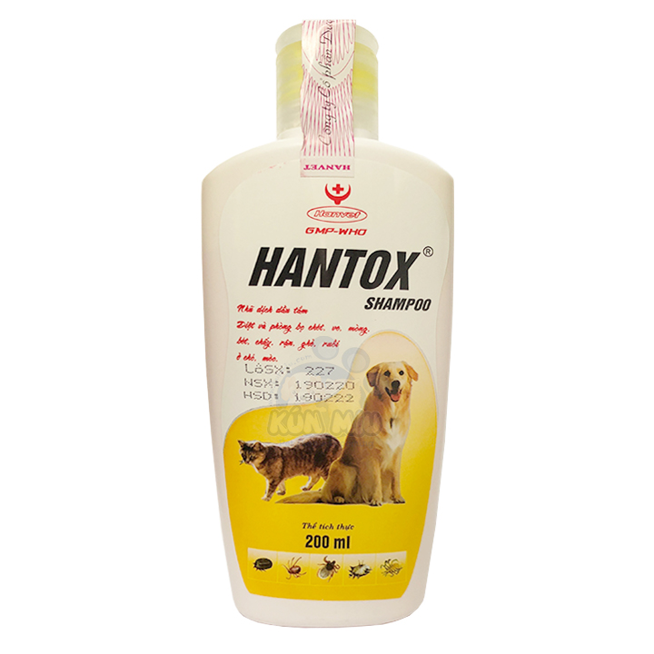 Hantox shampoo chứa Pyrethroid [(1R,3R)-3(2,2-dibromovinyl)-2,2-dimethylcyclorpropane carbocylate(S)-α-cyano-3-phenoxybenzyl] hoạt chất không chứa lân hữu cơ nên ít độc, tác dụng kéo dài, hiệu quả cao, an toàn cho người, vật nuôi.. CÔNG DỤNG - Diệt và phòng