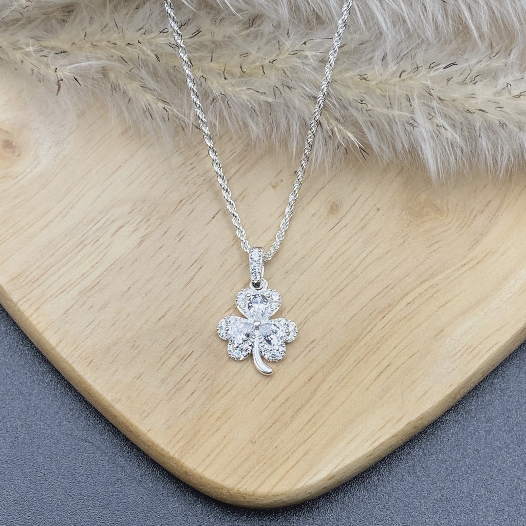Dây chuyền DCJ67 cỏ 3 lá đính đá sắc màu bạc 925 ChariotJewelry
