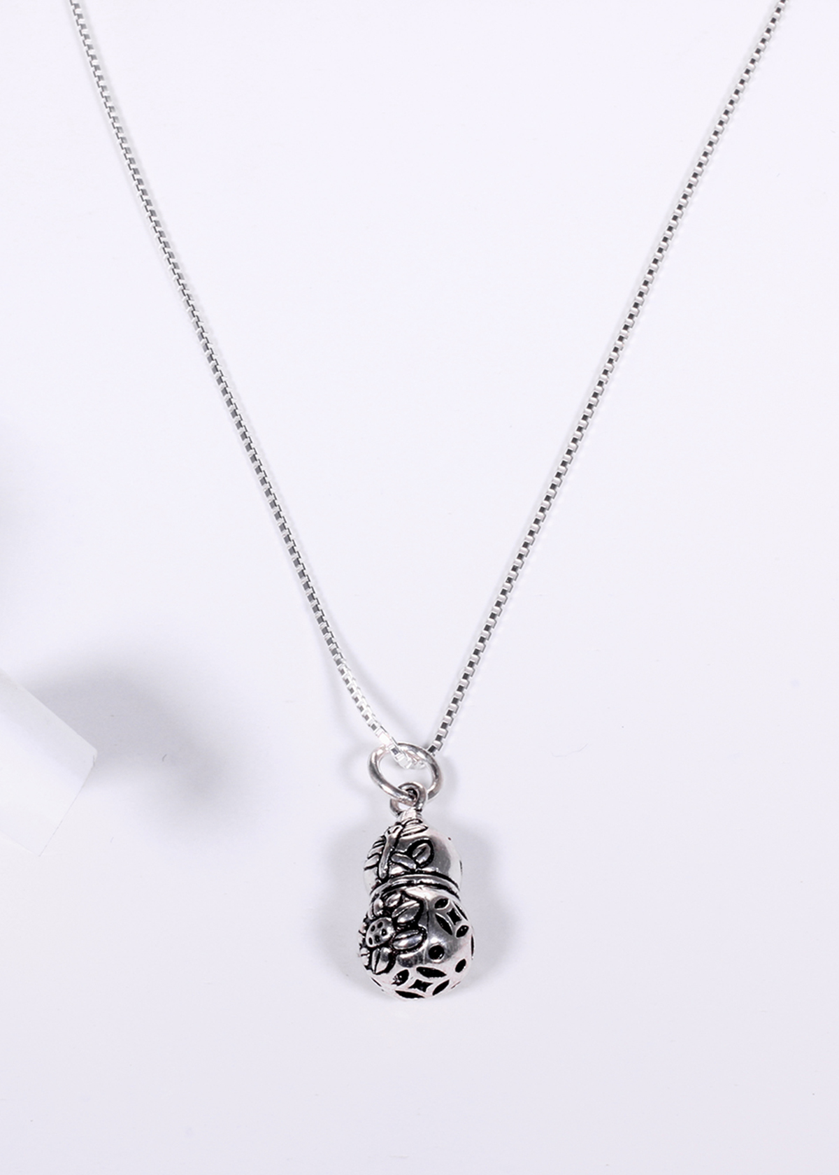 Dây chuyền bạc mặt hồ lô làm bằng bạc chất lượng cao .Để làm mới sản phẩm dùng lâu ngày, chỉ cần dùng xà phòng hoặc ngâm trong nước kem đánh răng sẽ đẹp lại như mới ( bạc xi hoặc bạc không đạt chất lượng thì sẽ ko có tính chất này )