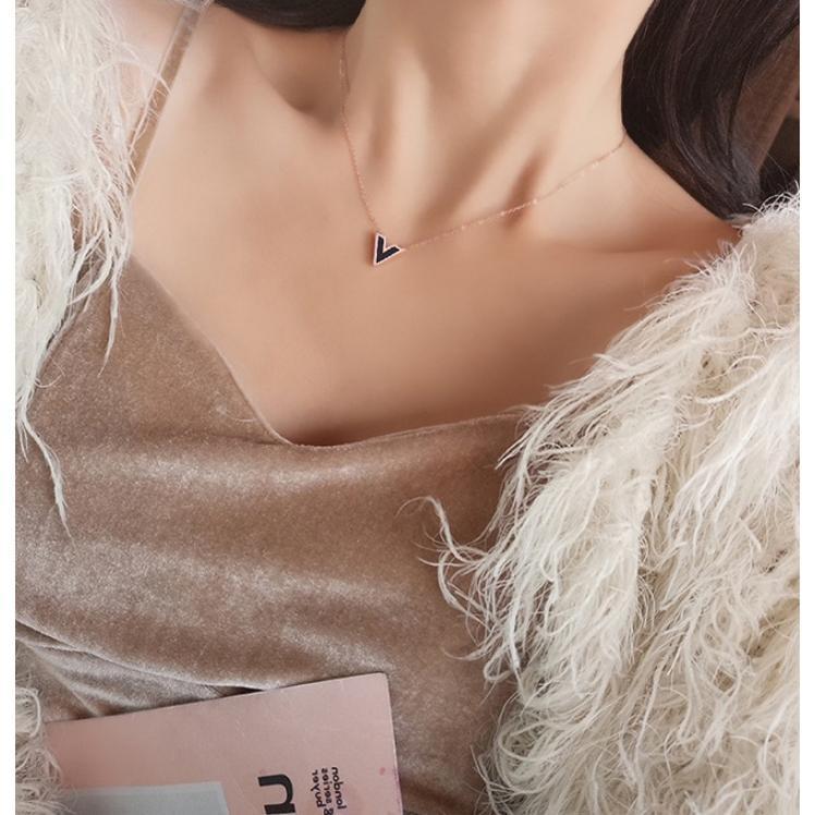 Mua tại TiktokDây chuyền nữ titan thời trang cao cấp mặt chữ V nền đen thép không gỉ trangsucpt có 3 màu sắc DCNUT74
