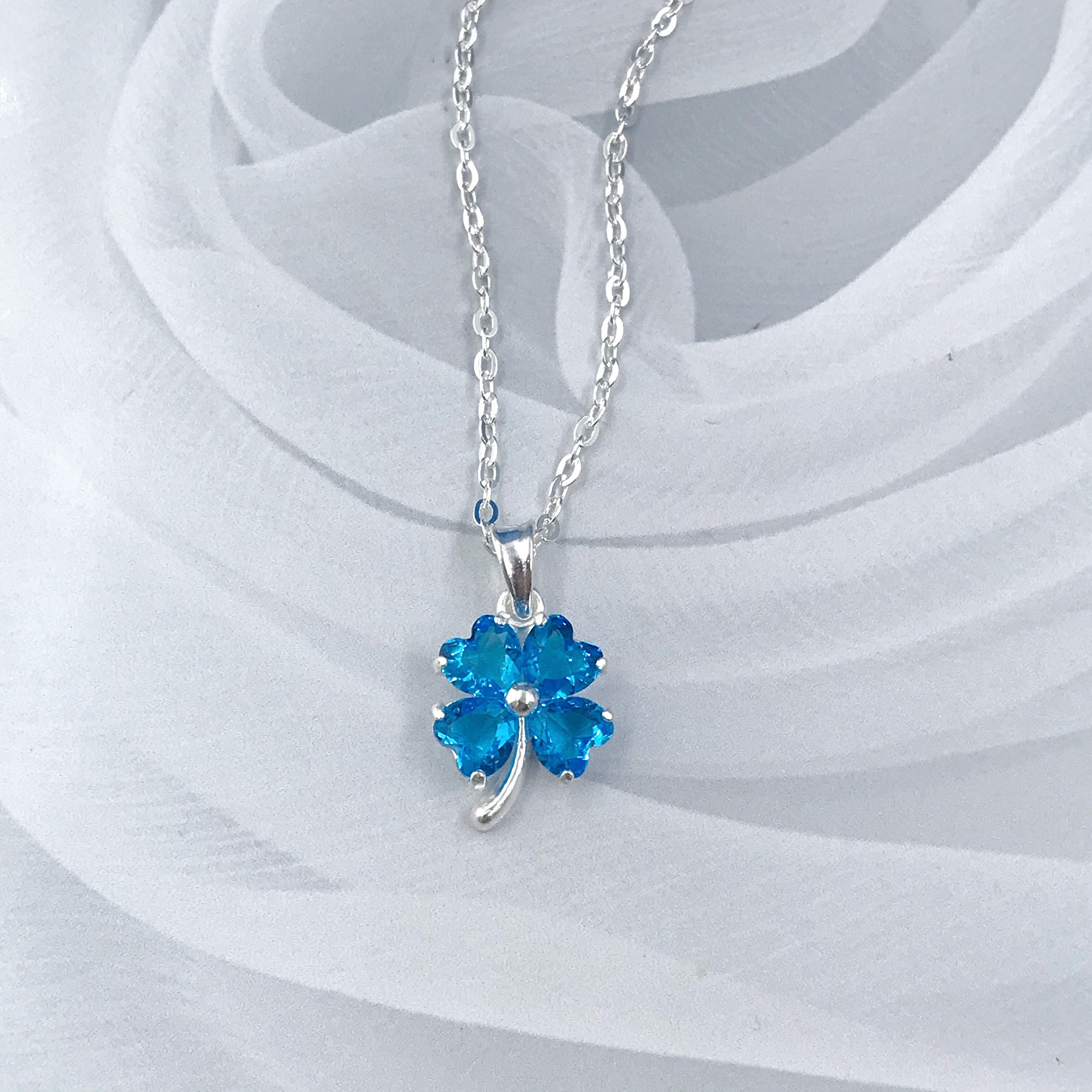 ✨Dây Chuyền Vòng Cổ Bạc 925 Cao Cấp Cỏ 4 Lá Xanh Dương Mix Đá CZ Chống Xước Sang Trọng Sáng Đẹp BẠC HIỂU MINH DMD454