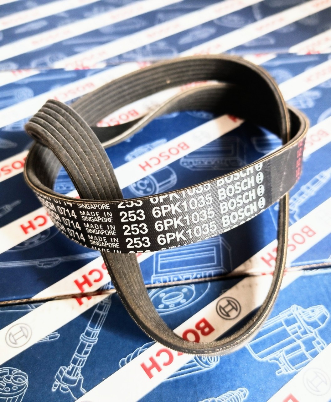 Mô tả sản phẩmDây Curoa Bosch kiểu rãnh chữ VĐặc tính:– Lớp vải sợi bọc ngoài với cấu trúc sợi chéo– Các dây chụi lực kéo bền, chắc và kéo căng– Cao su chụi nén do tăng cường phần tử dạng sợi– Vải sợi mặt đáy nhiều lớp– Răng đúcLợi ích:– Bền, chắc, chống mài mòn, không mất độ đàn hồi– Dây ít bị kéo giãn và cho công suất cao hơn– Hệ số ma sát lớn, chống mòn tuyệt vời, độ đàn hồi cao– Chống nức, độ dẻo dai cao, chụi dầu, chụi nhiệt– Thiết kế độc đáo, tuổi thọ uốn cong cao
