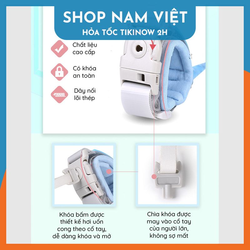 ️ Cách sử dụng: Điều chỉnh tay đeo cho vừa với bé và người lớn Dùng chìa khóa ở phía tay người lớn để khóa lại