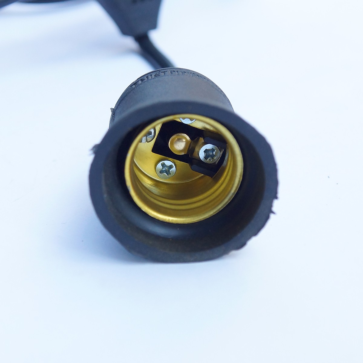 Dây đui E27 ngoài trời. Phong cách châu âu, tiêu chuẩn chống nước. Quy cách 1 bộ dài 5m 10 đui, 10m 20 đuôi đèn, đầu cuối có đầu chờ để cắm sang dây tiếp theo, rất tiện loại trang trí chiếu sáng ngoài trời. Dây 10m có 20 đuôi đèn nghĩa là khoảng cách 50cm 1 đuôi , Quý khách có thể dùng Bóng LED Edison vỏ thủy tinh trong suốt hoặc Bóng LED tròn vỏ nhựa kín đuôi.