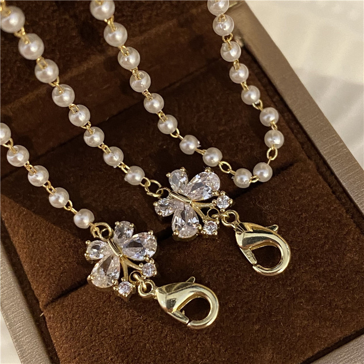 ✨Dây đeo gọng kính đeo khẩu trang chuỗi hạt ngọc trai nhỏ mix cánh bướm đá lấp lánh phong cách nhẹ nhàng Hàn Quốc