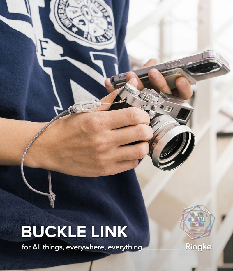 Dây đeo RINGKE Buckle Link được thiết kế thông minh gồm 1 đầu móc Buckle Base, 1 đầu móc Buckle Link và 1 sợi dây có thể tháo rời, có thể tuỳ thích điều chỉnh độ dài phù hợp. Đầu móc Buckle Base và Buckle Link liên kết với nhau chỉ bằng một thao tác ấn mở dễ dàng, nhưng vẫn đảm bảo chắc chắn và bền bỉ.