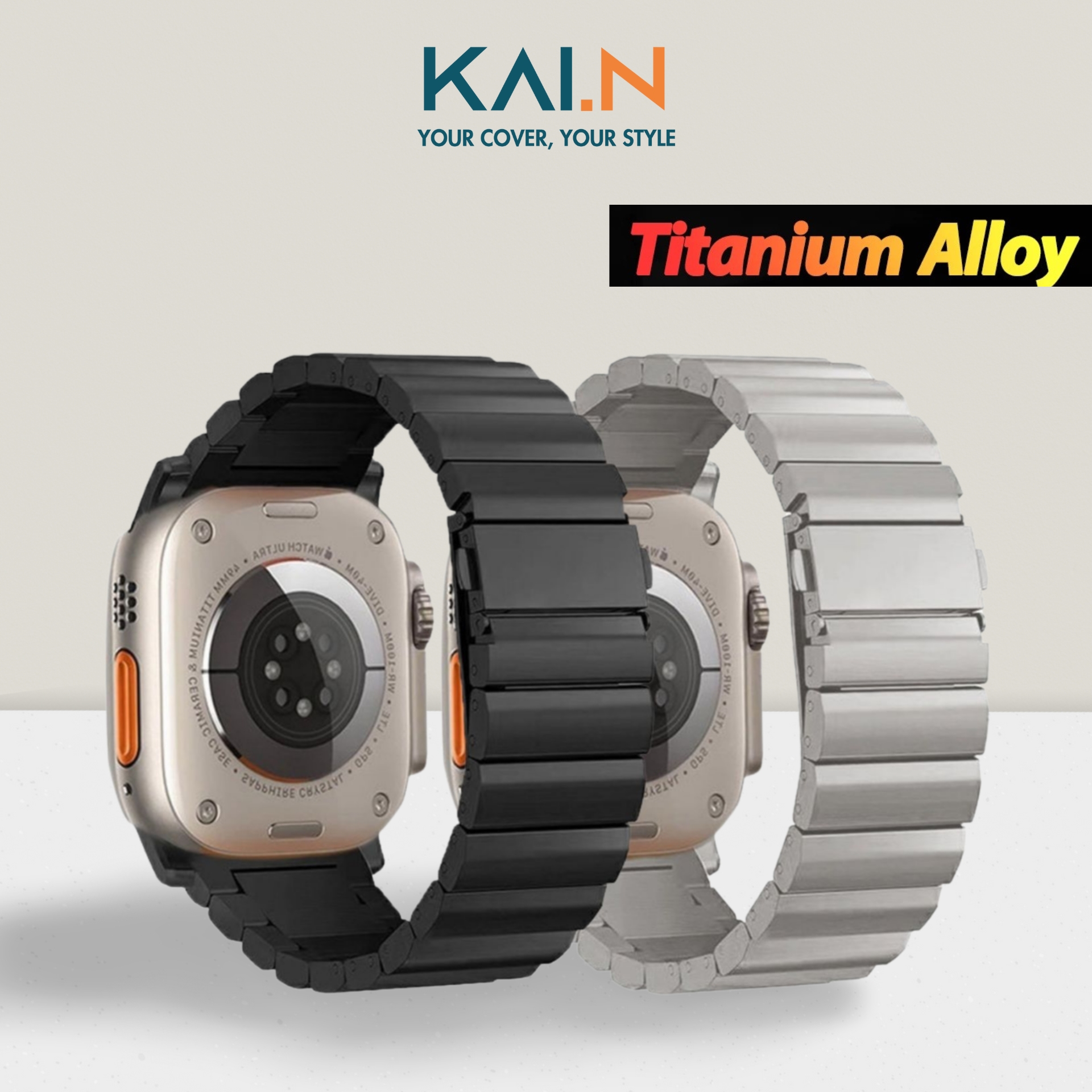 Thương hiêu: KAI.N - chính hãng Màu sắc: Black / Gold / Silver / Starlight / Blue / Gun Grey Tương thích với + Apple Watch Ultra 2 (2023) / Apple Watch Ultra (2022) Size