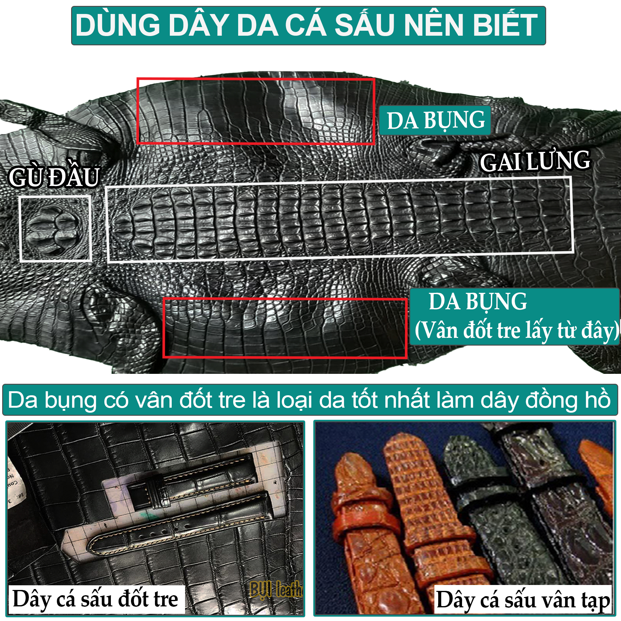 Dây đồng hồ da cá sấu khâu tay-Da thật-loại đốt tre cao cấp BH24tháng- D103-Shop da thật Bụi Leather