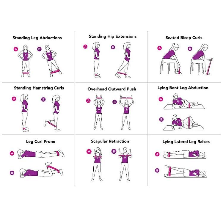 Dây đàn hồi hỗ trợ tập mông chân và tay được làm từ nguyên liệu cao su thiên nhiên mức trọng lực khác nhau từ nhẹ đến nặng thích hợp dùng cho người cao tuổi,