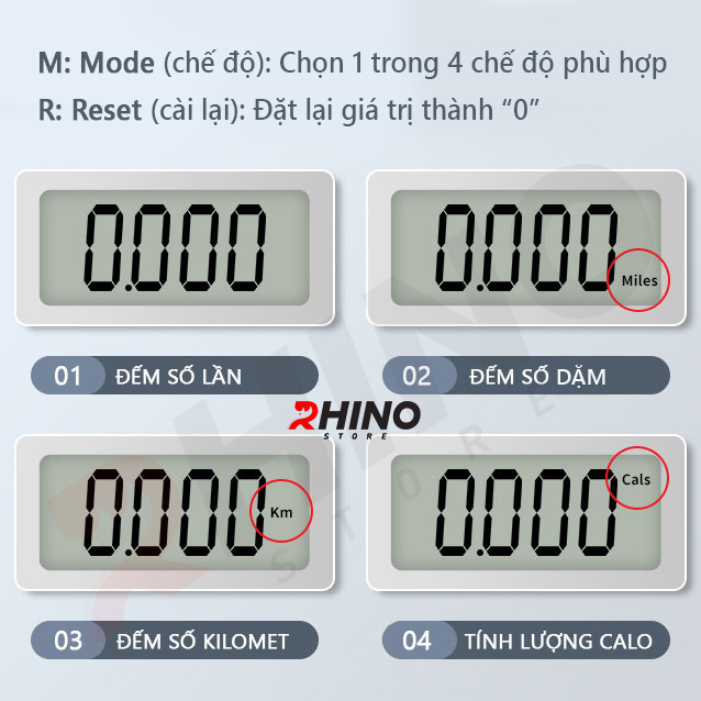 Chất liệu dây: PVC bọc dây thép cáp, chống nước, cách điện, độ bền cao Dây nhảy thể thao lõi thép cao cấp Rhino J101 tự động đếm số, tích hợp đo calo, quãng đường