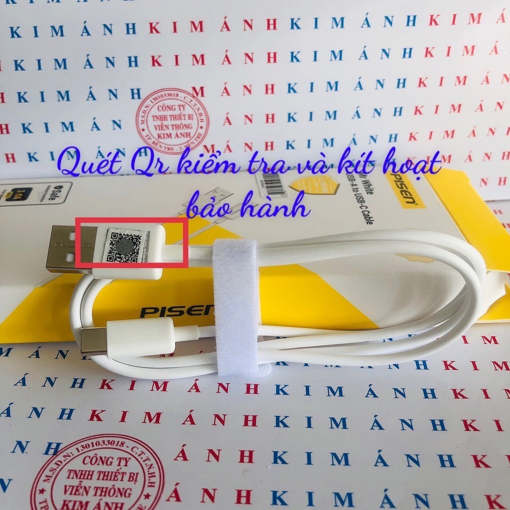 Dây sạc nhanh Pisen Mr White 3A, chân cắm Type-C (Fast) 1 mét( TC25-1000), Hàng chính hãng check Qr bảo hành
