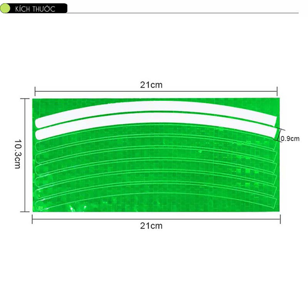 Mua tại TiktokĐề Can Phản Quang Miếng Dán Vành Bánh Xe Đạp Leo Núi Bánh 16 icnh (8 miếng/ bộ) Giá trên là giá 1 bộ (có 8 miếng dán/ tấm), mỗi cái chỉ có thể có một màu duy nhất dành cho xe đạp địa hình bánh 26 inch, bánh trước và bánh sau nên có nhiều hơn 4 bộ (số lượng 4 tấm dán) Chất liệu: Chất liệu phản quang decal chống thấm nước Kích thước: 21cm x 0.9cm Kích thước toàn tấm: 21x10.3cm 6 màu cho sự lựa chọn: Đỏ, Cam, Bạc, Xanh Dương, vàng, Xanh Lá Có thể sử dụng được trên bánh xe đạp/ bánh xe máy Giúp phản quang vào ban đêm, để đảm bảo an toàn cũng như một vật trang trí