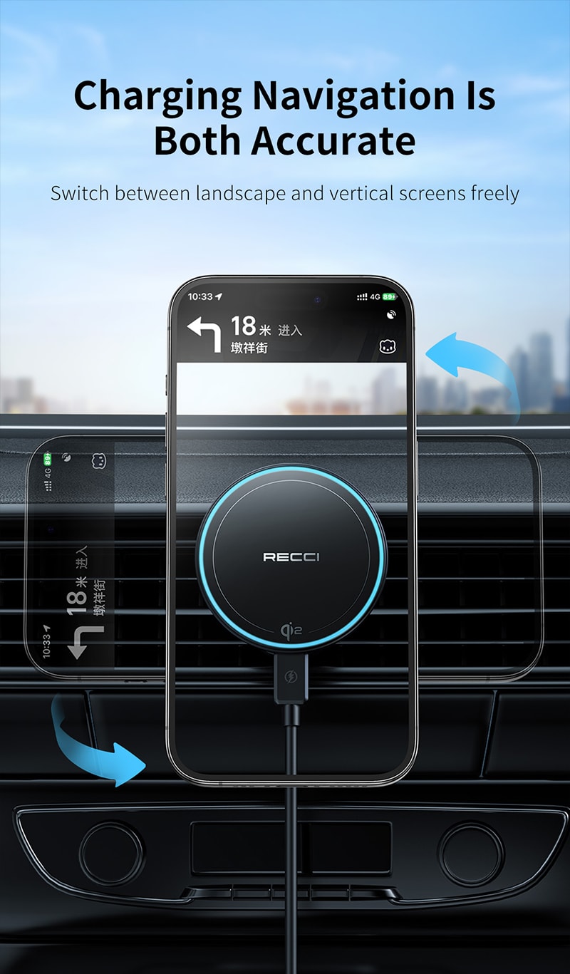 ✨Đế giữ điện thoại tích hợp nam châm và sạc không dây dùng trên xe ô tô RECCI RHO-C43 Hàng chính hãng