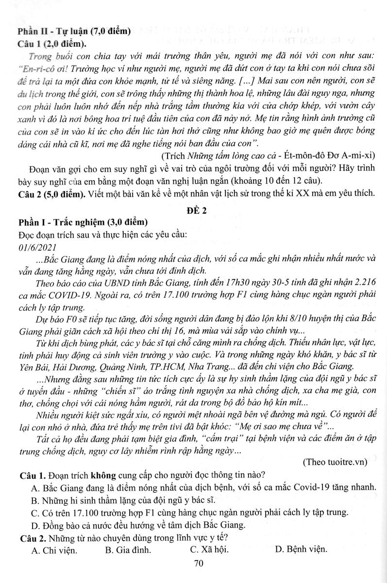 Phần 2. Đề kiểm tra đánh giá năng lực. Phần này gồm các đề kiểm tra thường xuyên và định kỳ được xây dựng theo các mức độ để đánh giá năng lực học sinh trong thời gian phù hợp.