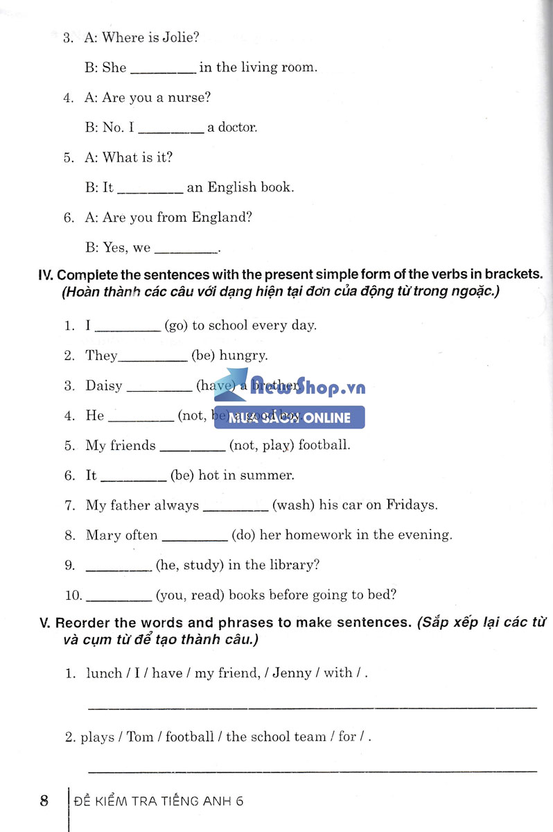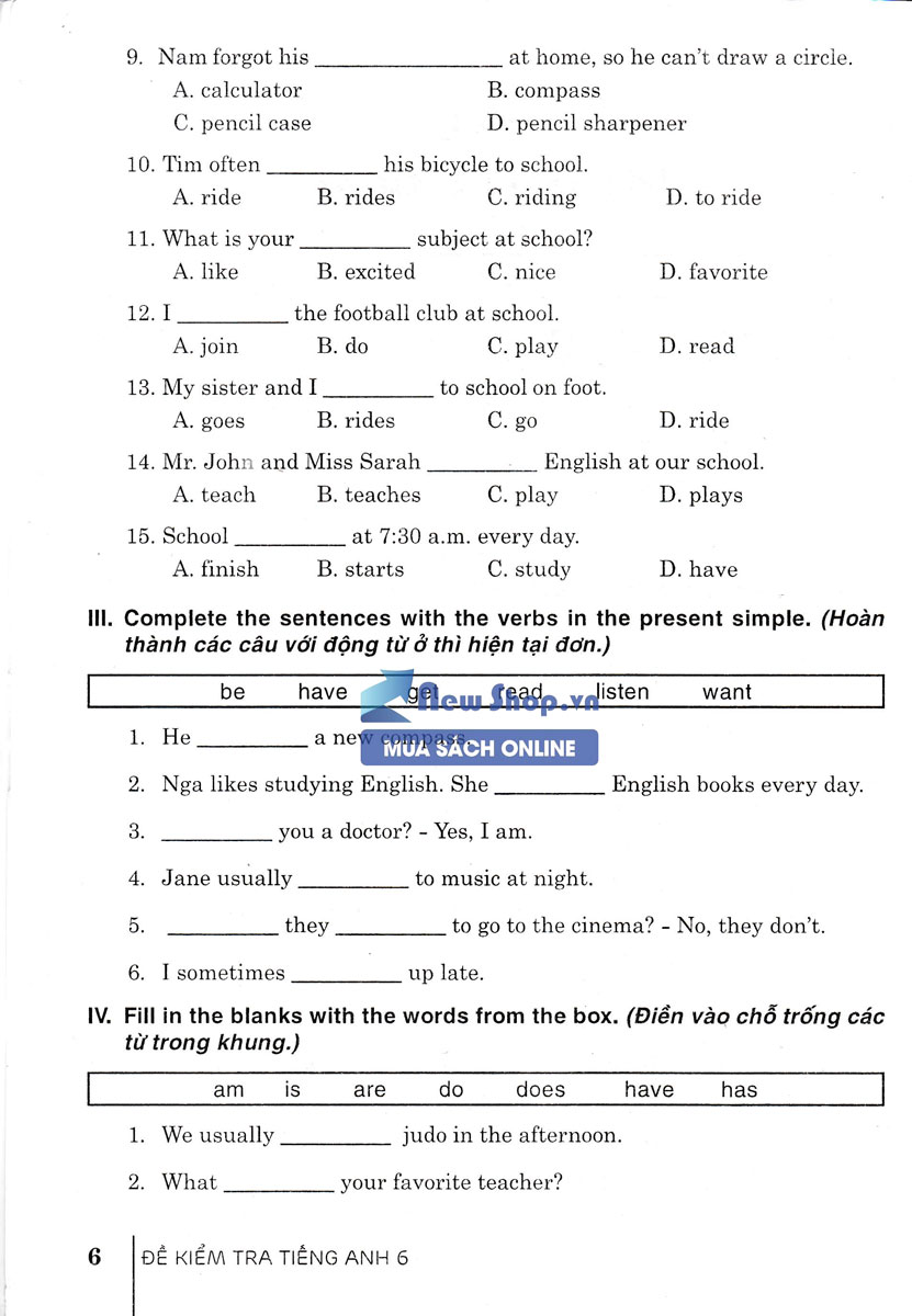Đáp ứng yêu cầu đổi mới của Bộ Giáo dục và Đào tạo đối với việc dạy và học tiếng Anh dành cho lớp 6 hiện nay, chúng tôi biên soạn cuốn sách Đề Kiểm Tra Tiếng Anh 6.