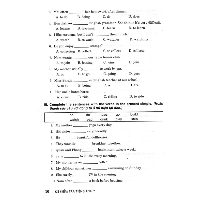 làm quen với cách giải các đề kiểm tra môn Tiếng Anh 7 một cách chuẩn xác.
