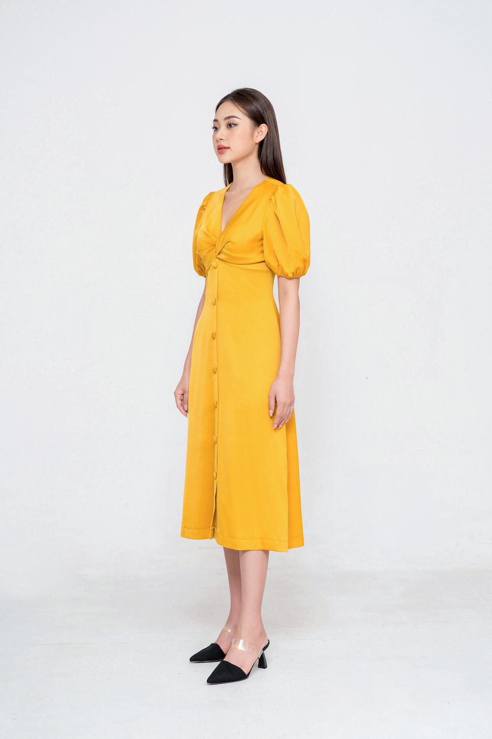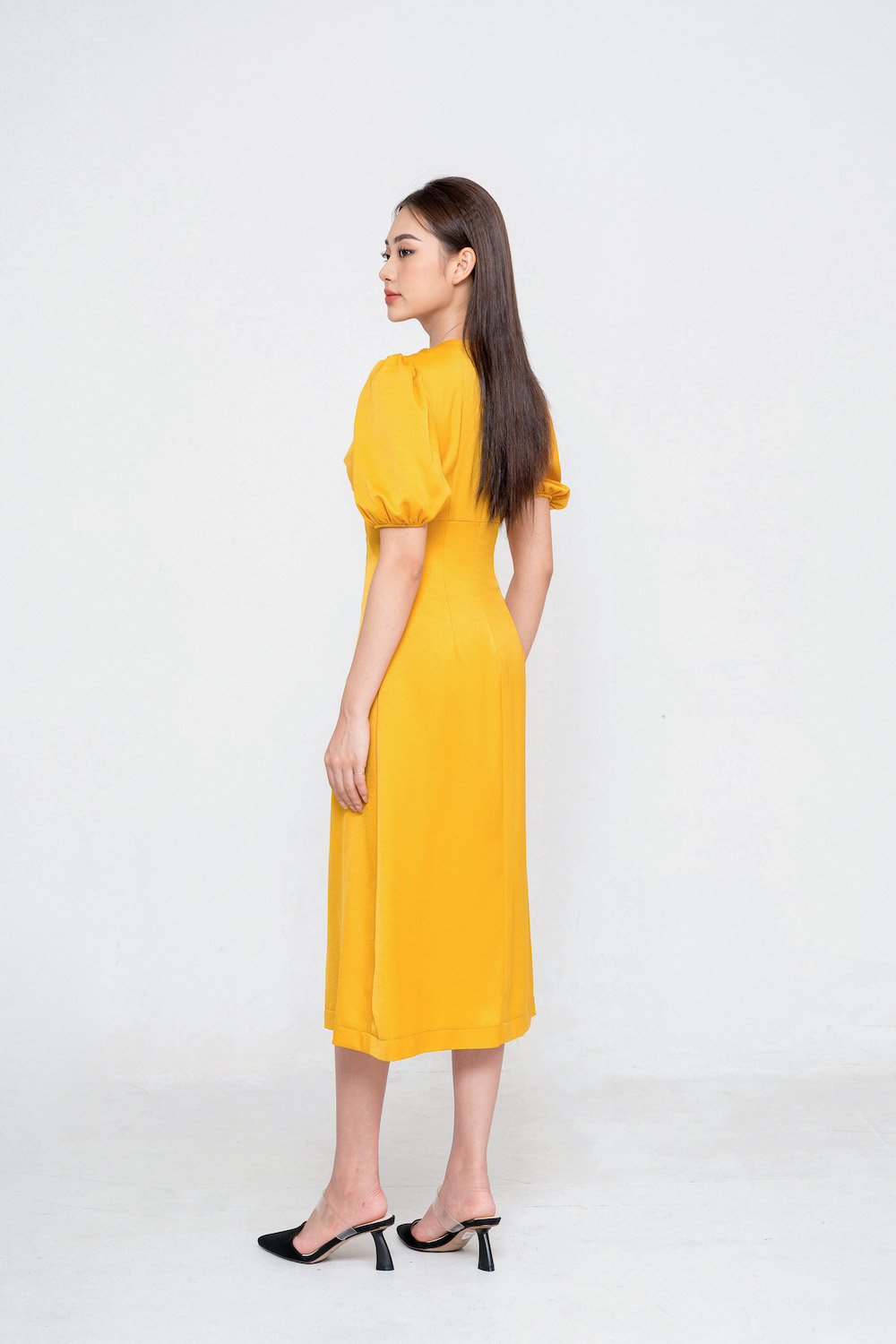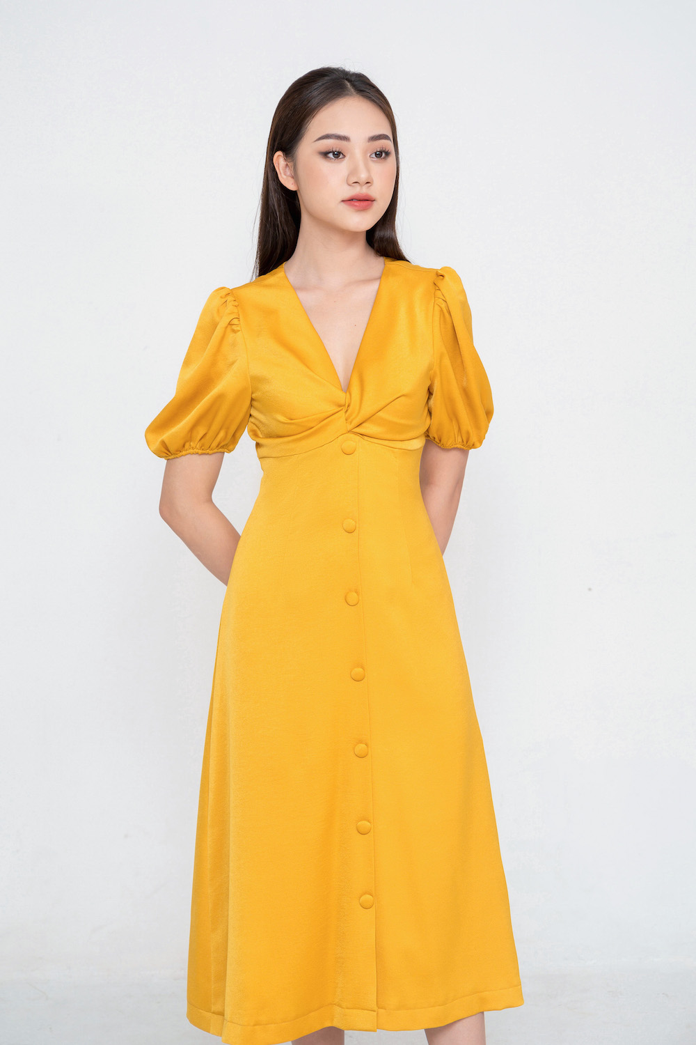 - Đầm dáng xoè midi, tay bồng