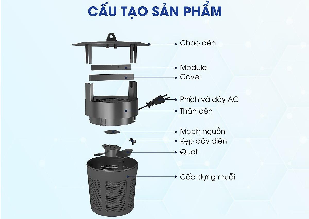 - Muỗi khi bị hút vào ngăn đựng tự chết trong 48 giờ, không gây tiếng nổ, không tạo mùi khét.