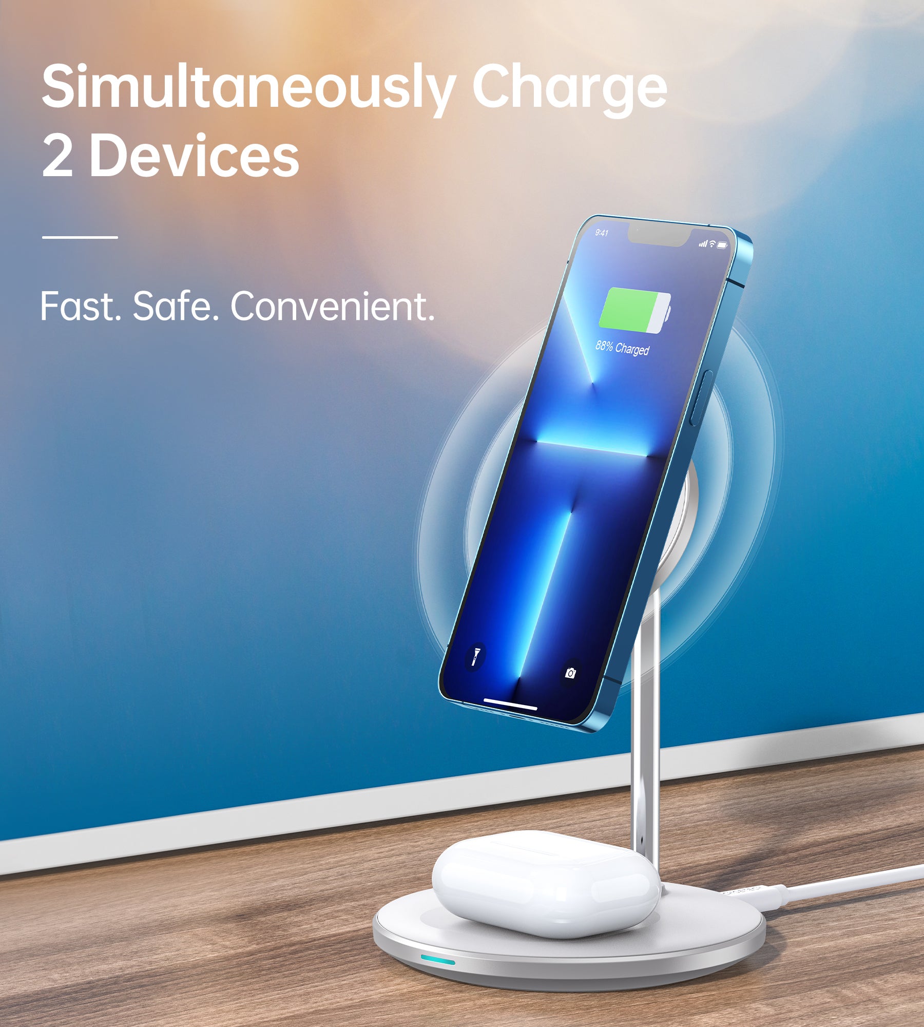 *Lưu ý: Đế sạc phù hợp với các thiết bị có hỗ trợ sạc không dây, riêng chức năng sạc mag.safe chỉ hỗ trợ cho các dòng từ i.phone 12 series trở lên và các dòng tai
