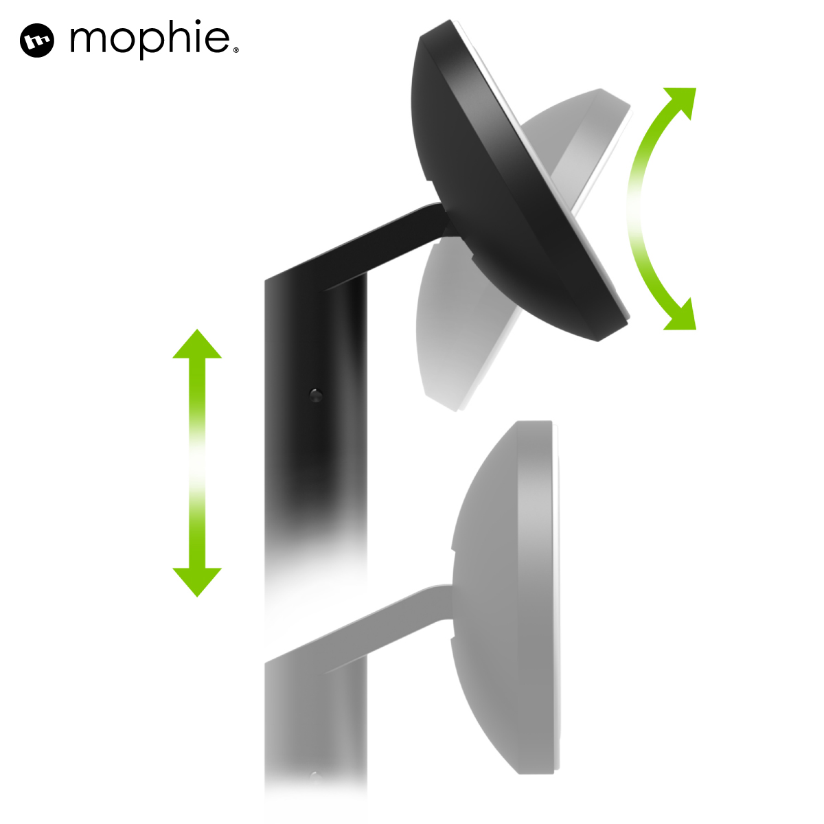Đế sạc không dây Charge force desk mount Mophie Nam châm từ tính Tích hợp nam châm từ tính giữ máy chắc chắn khi sử dụng. Thiết kế xoay chuyển tùy thích Có khóa