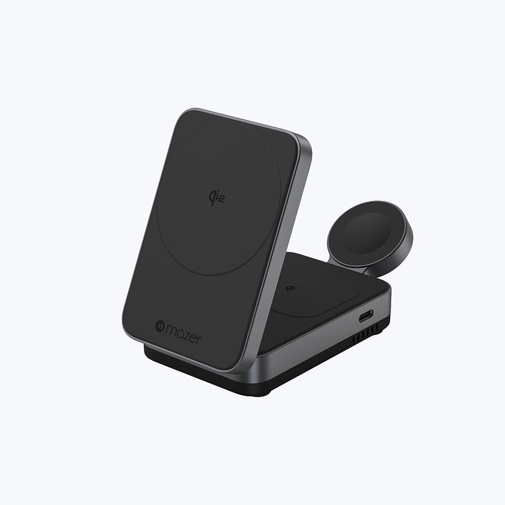 ✨Đế Sạc Không Dây 3 in 1 Mazer MagFold Trio QI2 15W Sạc Được Cho Điện Thoại, Tai Nghe, Đồng Hồ Gấp Gọn Tiện Mang Theo Hàng Chính Hãng