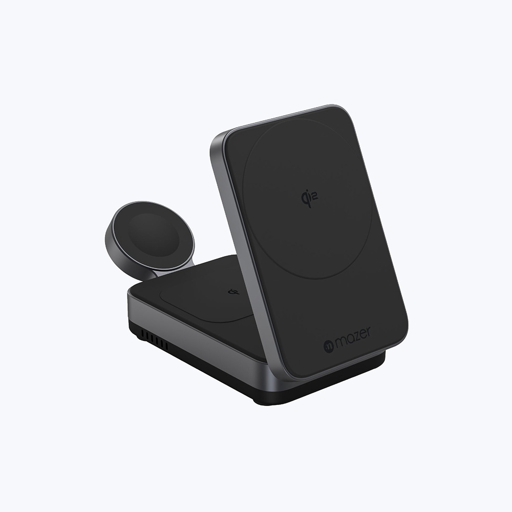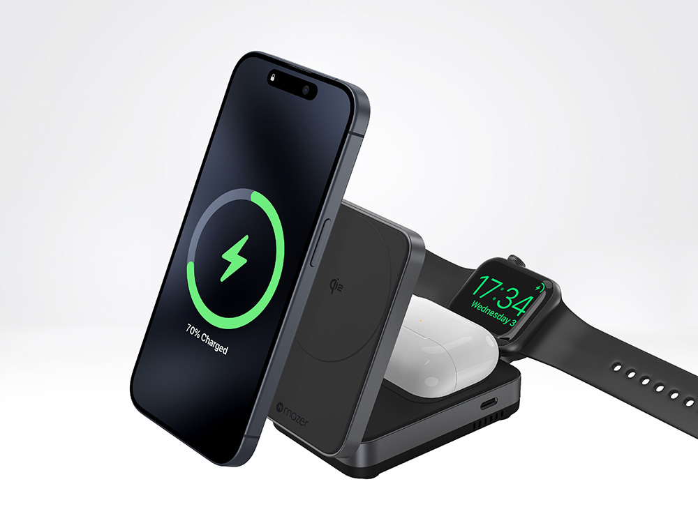 Đế Sạc Không Dây 3 Trong 1 Mazer MagFold Trio QI2 15W Sạc Được Cho Điện Thoại, Tai Nghe, Đồng Hồ Gấp Gọn Tiện Mang Theo Đế Sạc Không Dây 3 Trong 1 Mazer MagFold Trio QI2 cung cấp sạc mạnh, cực kỳ hợ...