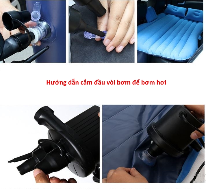 Sản phẩm có bơm hơi đi kèm, khi cần dùng cắm điện vào châm thuốc trên xe hơi bơm lên