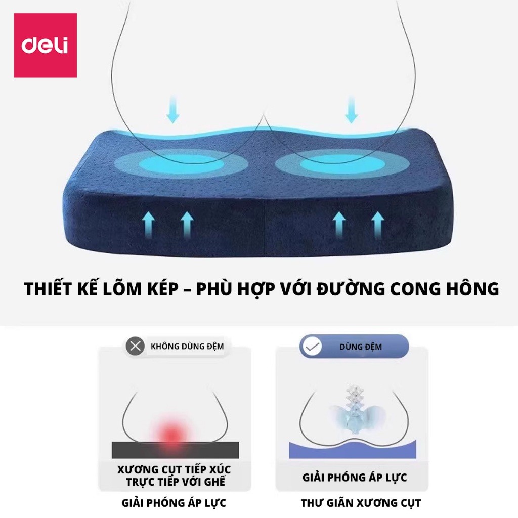 THÔNG TIN SẢN PHẨM Tên sản phẩm: Đệm ngồi Deli nệm lót ghế cao su non siêu đàn hồi chống trĩ chống đau ê mông êm ái giúp ngồi thoải mái cả ngày tiện dụng