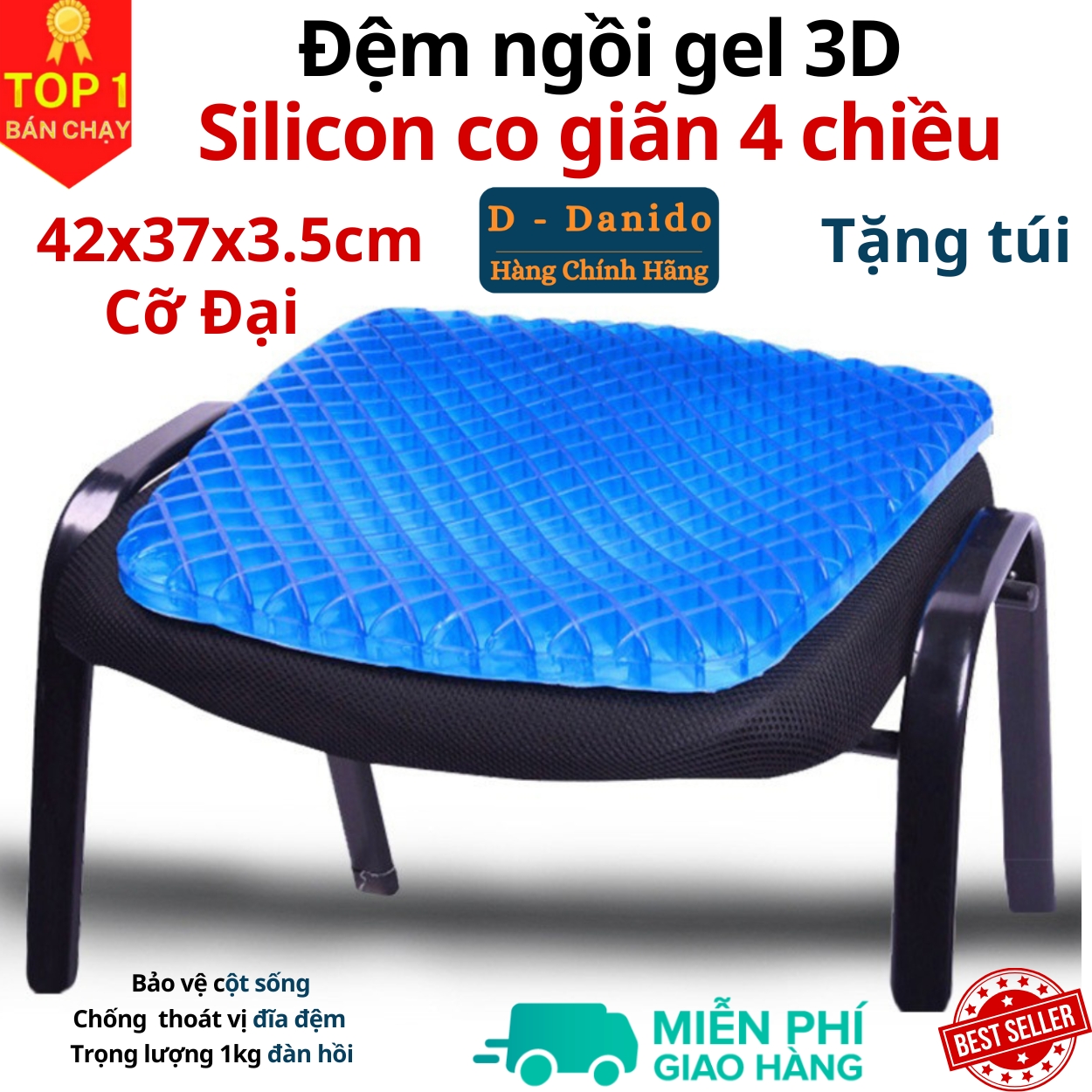 • Mặt dưới của đệm được thiết kế thông minh với chất liệu đặc biệt có khả năng bám dính cao tránh trơn trượt, dùng được cho mọi chất liệu ghế. -  Đệm (nệm) ngồi thông minh 3D thoáng khí với công dụng đa năng cho mọi lứa tuổi sử dụng: người bị bệnh trĩ, đau cột sống, thoát vị đĩa đệm, đau thần kinh tọa, giãn tỉnh mạch; người thường xuyên ngồi nhiều như dân văn phòng, các bác tài, người cao tuổi, >>> HƯỚNG DẪN SỬ DỤNG <<< + Trải đệm trên ghế ngồi. Đệm sử dụng được cả 02 mặt + Khi bị bụi bẩn chỉ cần rửa bằng nước sạch và xà phồng thông thường. Không được dùng nước nóng hoặc thuốc tẩy để rửa đệm. + Tránh vật bén nhọn, chất cháy tiếp xúc với đệm. Chất liệu Silicon mềm mại, êm ái với khả nằng đàn hồi siêu đỉnh đem lại độ bền cao cho sản phẩm ! Thiết kế tổ ong thoáng khí đem lại cảm giác ngồi cực kỳ thoải mái, dễ chịu hạn chế lực tác động lên mông gây khó chịu khi phải ngồi trong thời gian dài  Tặng kèm vỏ gối tiện lợi  Sản phẩm dễ dàng làm sạch chỉ cần rửa qua với nước Thiết kế thông minh đem lại tác dụng tuyệt vời Công dụng đa năng phù hợp với mọi lứa tuổi ! miDoctor xin chân thành cảm ơn Quý khách đã tin tưởng và sử dụng sản phẩm của shop Kính chúc Quý khách có những trải nghiệm tuyệt vời cùng sản phẩm !