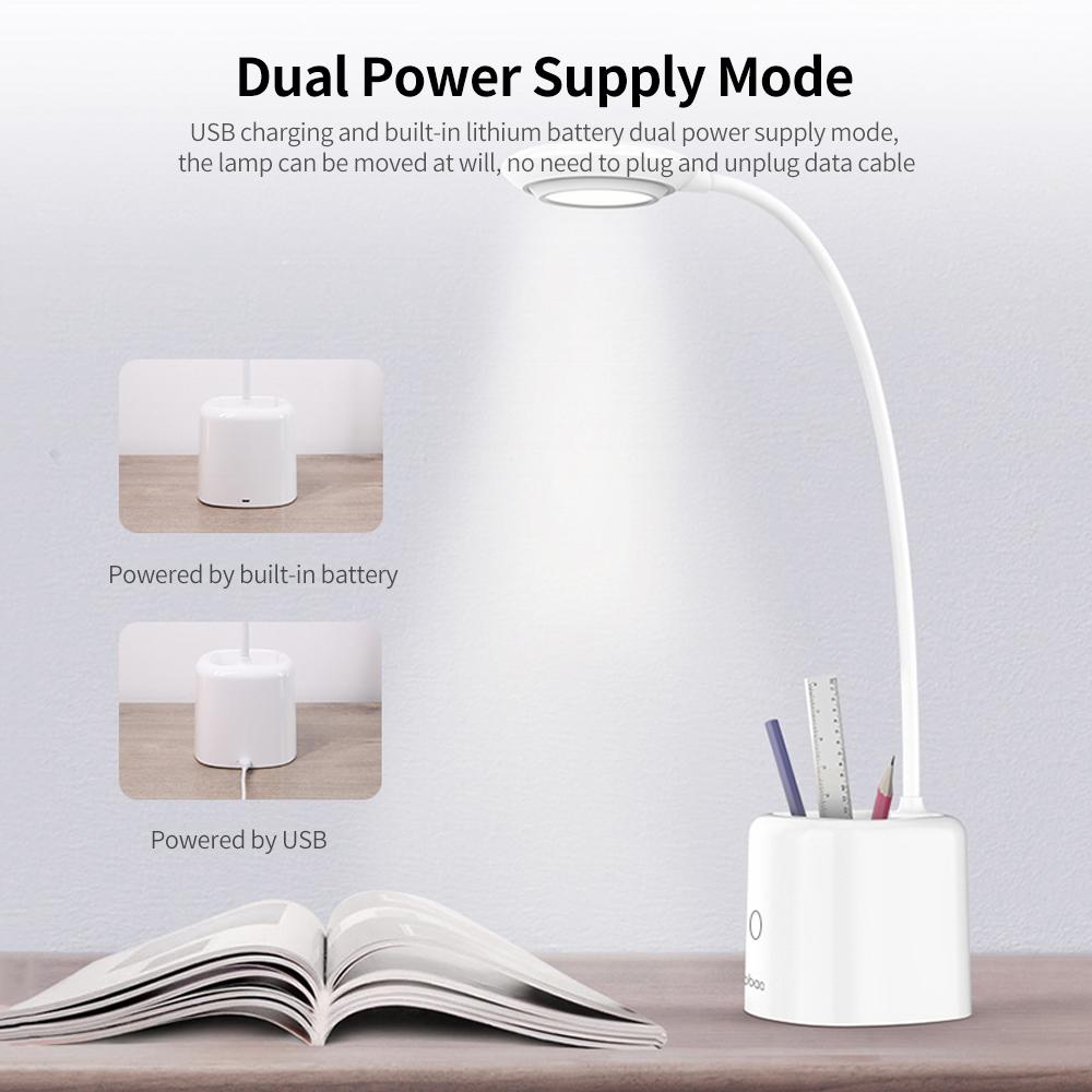 Features: 4000K warm white light, bright, soft and not dazzling. High color rendering index, restore true color. Anti blue-ray, no stroboscopic, not hurt your eyes. High sensitive touch key, three-level brightness adjustment, easy to use. 360 degree flexible and durable hose, you can adjustable angle at will. Large capacity pen holder, convenient to receive stationery or other goods. USB charging and built-in lithium battery dual power supply mode, the lamp can be moved at will, no need to plug and unplug data cable. Multiple charging modes, it can be charged by computer, power bank, plug, etc. Specification: Brand: Yoobao Model: E3 Color: White/Green/Pink(optional) Color temperature: 4000K200K CRI(color rendering index): >90 Battery capacity: 2000mAh Input: DC 5V/1.5A(Max) Rated power: 3W(Max) Item weight: Approx. 338g /11.92oz Package size: 29.2 10.7 10.7cm /11.5 4.21 4.21in Package weight: 469g /16.54oz Packing list: 1 Desk lamp 1 Charging cable 1 * User manual