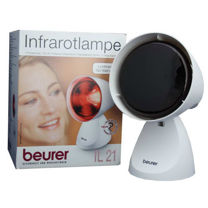 Đèn Hồng Ngoại Trị Liệu Beurer - Loại 150W - IL21 là loại đèn chuyên dụng, phát ra tia hồng ngoại với cường độ cao giúp giảm đau, chống co cứng cơ, làm giãn mạch, làm tan máu bầm, tăng chuyển hóa và dinh dưỡng tại chỗ. Với công suất 150W, khi được bật bóng, ánh sáng hồng ngoại từ bóng đèn sẽ chiếu vào các vết thương giúp làm giảm đau, tan máu bầm, sưởi ấm, mang đến cơ hội trị liệu và chăm sóc da hiệu quả.
