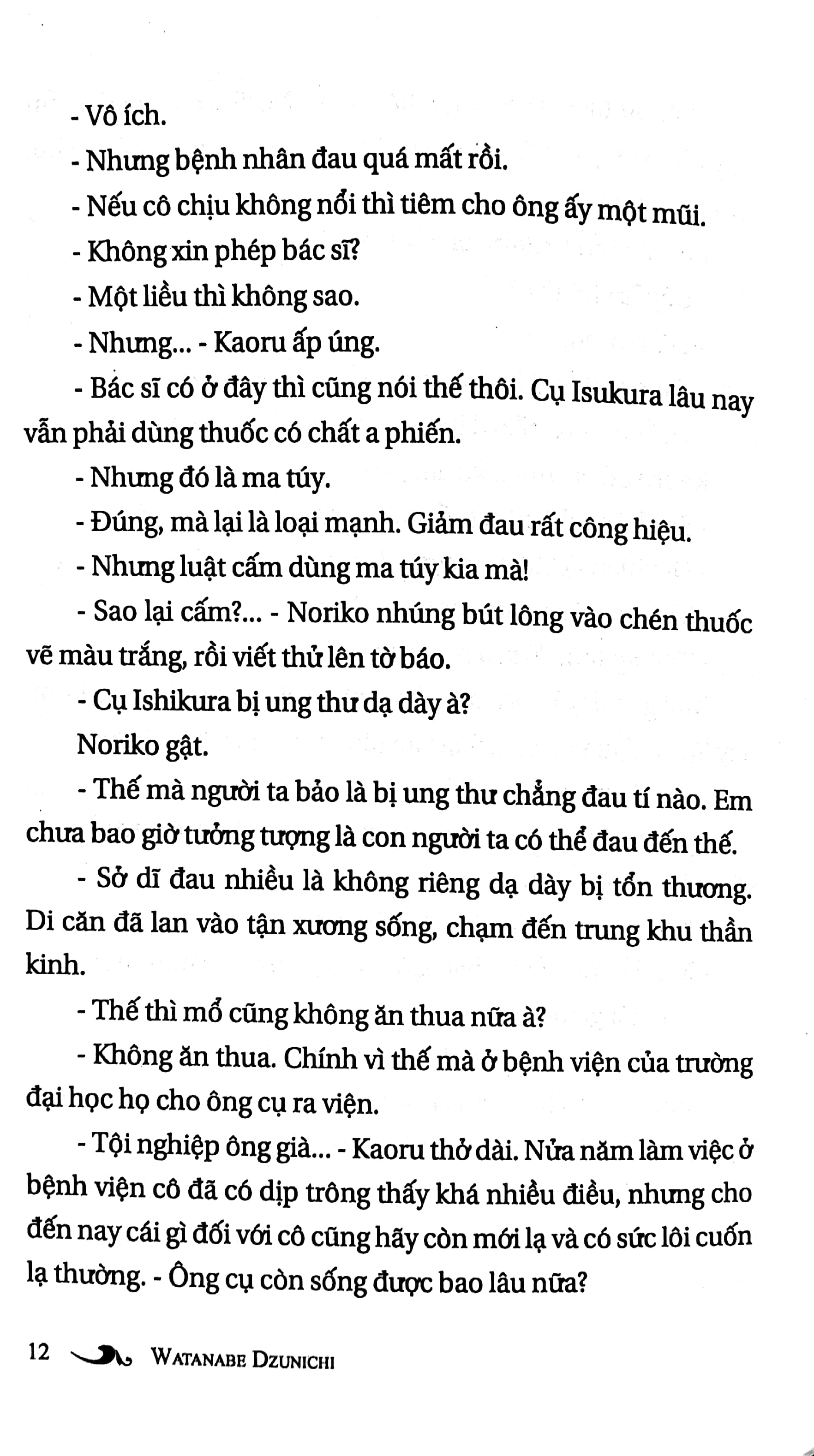 Chỉ đến khi Naoê mất đi, bức màn bí mật mới được vén lên. Giữa bao nhiêu phụ nữ vây quanh, Naoê chỉ yêu một mình Noriko. Cô chính là mảnh gương cuộc đời để anh soi vào, là chỗ bấu víu duy nhất trong những cơn đau đớn tuyệt vọng vì cái chết gần kề… Nhưng vì kiêu hãnh và xót thương, anh không bao giờ phơi bày sự thật với cô. Tình yêu bền bỉ của Noriko đã được đền đáp, dù muộn mằn…