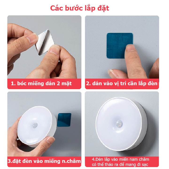 - Phù hợp gắn nhiều nơi như trong phòng ngủ, trong tủ quần áo, tủ chén bát, Toilet, hành lang, đầu giường, cửa ra vào, phòng có trẻ nhỏ,… Đèn cảm ứng với cảm biến chuyển động thông minh, tự động bật đèn khi có người chuyển động Khi đèn cảm ứng, cảm biến ở chỗ sáng sẽ tự động bật chế độ chờ (tắt). Khi ở chỗ tối, nếu người sử dụng di chuyển trong phạm vi đèn sẽ tự động bật sáng. Sau khi người sử dụng rời đi 20 - 30 giây, đèn ngủ sẽ tự động trở về chế độ chờ Đèn cảm ứng, cảm biến có độ sáng hài hòa bảo vệ mắt, ko ảnh hưởng đến giấc ngủ Đèn cảm ứng, cảm biến giúp bạn dễ dàng lắp đặt, sạc pin tiện lợi Đèn cảm ứng, cảm biến rất phù hợp gắn nhiều nơi như trong phòng ngủ, trong tủ quần áo, tủ chén bát, Toilet, hành lang, đầu giường, cửa ra vào, phòng có trẻ nhỏ,… Thông số kỹ thuật của Đèn cảm ứng, đèn cảm biến chuyển động
