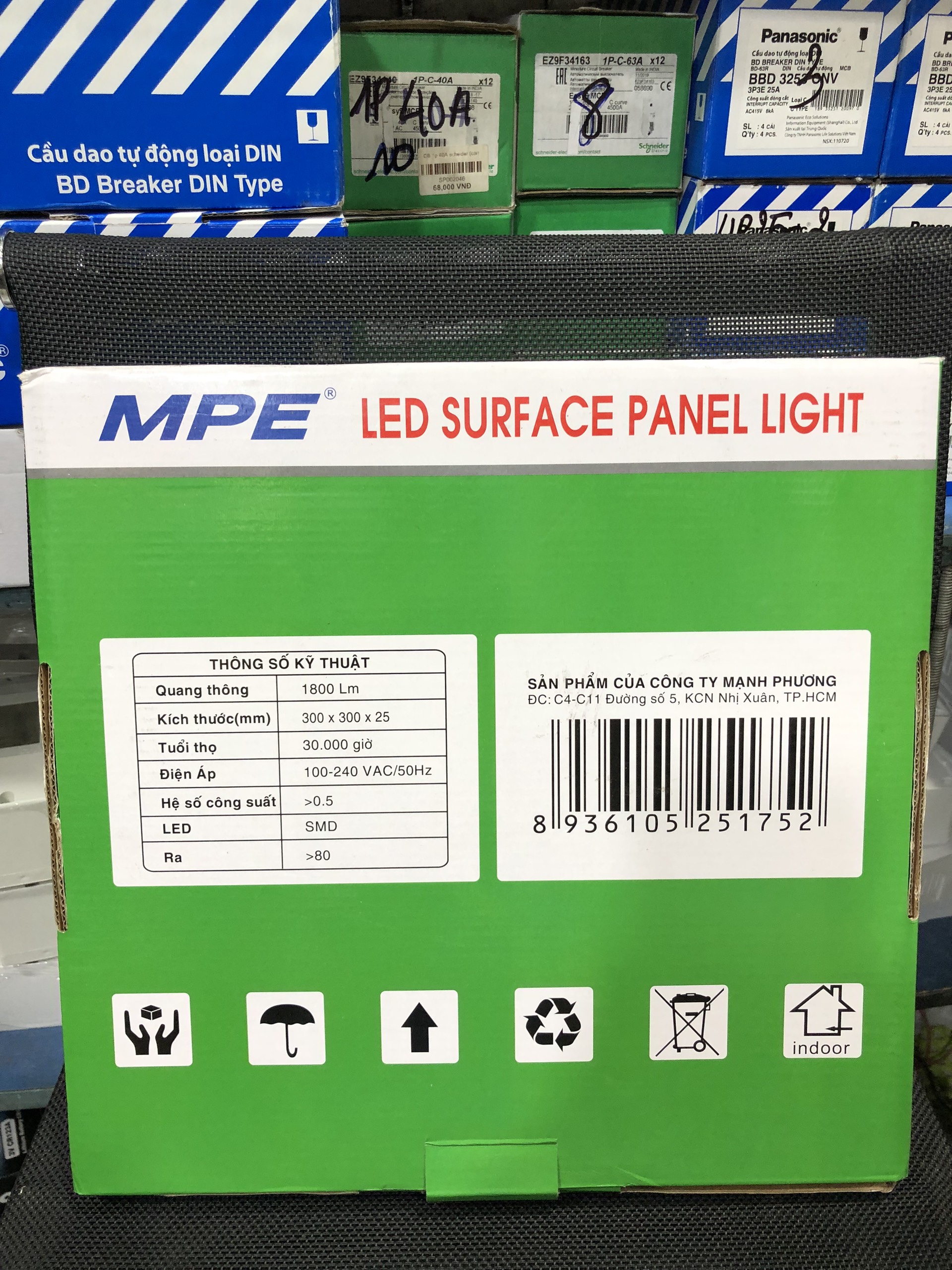 Mua tại TiktokĐèn Led Panel Ốp Trần Nổi Vuông 24W Hệ số công suất (PF): >0.5 Quang thông: 1.800 lm Nhiệt độ màu (CCT): 6000-6500K/2800-3200K. Ánh sáng trắng, vàng tương ứng với 2 mã hàng: SSPL-24T, SSPL-24V Chỉ số hoàn màu (CRI): >80 MPE Led Surface Mounted Square Panel size: 300mm × 300mm x 35mm Quy cách đóng gói: 1 cái/hộp Kiểu dáng đẹp, mẫu mã đa dạng, nhiều chủng loại, đèn led panel ốp trần nổi vuông MPE dễ dàng gắn nổi trần bê tông/ trần thạch cao cho các công trình: nhà phố, biệt thự, căn hộ chung cư, văn phòng. CE RoHS Điện áp: 100-240VAC Tuổi thọ: 30. 000 giờ Chip LED: SMD2835 RA>80 PF>0.5 CCT: 2800-3200K/ 6000-6500K Góc Chiếu: 120° Instant Light: 0s
