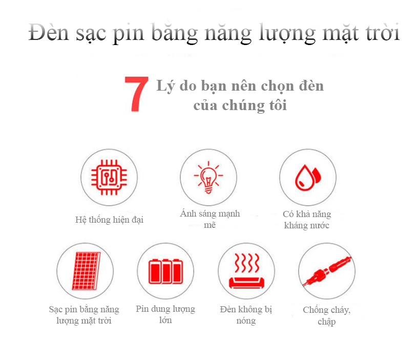 Ưu điểm của sản phẩm. - Sử dụng năng lượng mặt trời làm nhiên liệu chiếu sáng Với công nghệ ánh sáng nano tập trung thế hệ thứ 6, các hạt đèn phân bố dầy