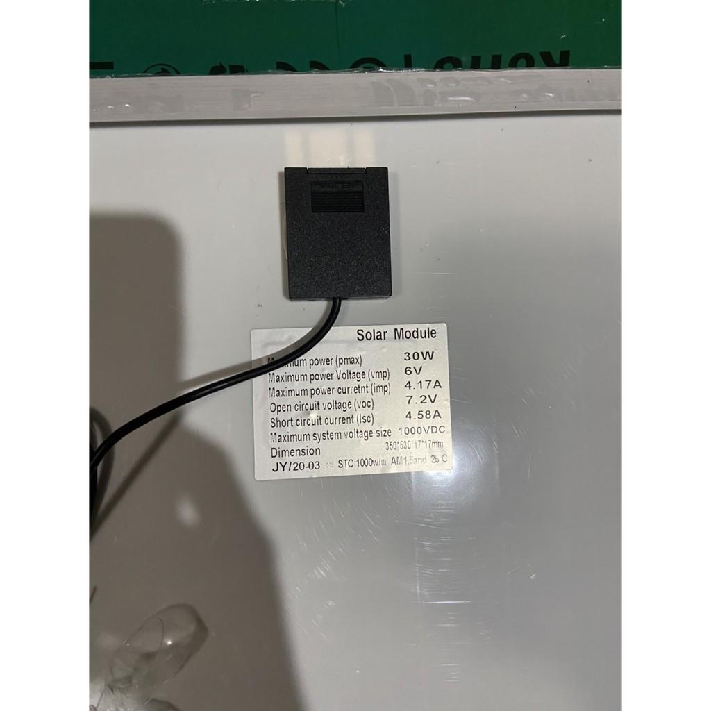 Công xuất thực 30w mắt led 2835 trong đèn có 130 mắt led kích thướt đèn: 270x230mm kích thước tấm pin 240x350mm tiêu chuẩn bảo vệ chống nước: ip69 thời gian nắng để sạc: 6-8h