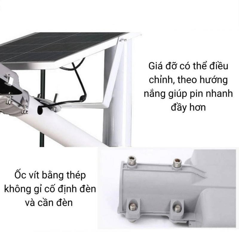 - Thời gian sạc 6-8 tiếng nắng, Hiệu suất sạc pin ~30% vào những ngày mây mù Đèn năng lượng mặt trời 300W có ánh sáng trắng, Diện tích chiếu sáng từ :200-300m2