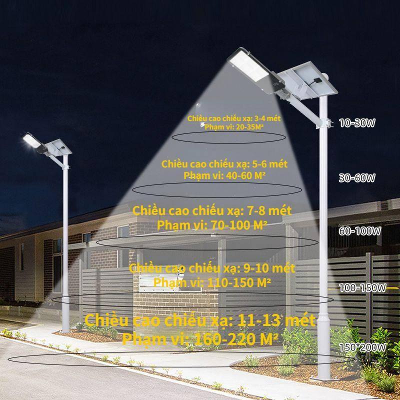 Đèn đường LED năng lượng mặt trời sử dụng chiếu sáng ngoài trời như đường phố, khu công nghiệp, sân hoạt động thể dục thể thao, khuôn viên, chiếu sáng trang trí, Đèn cung cấp nguồn ánh